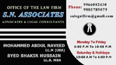 S.N. Associates - Advocates & Legal Consultants, offer a wealth of services expertise in areas of Litigation, Non Litigation and Alternative Disputes Resolution. We Offer Services such as the Constitutional Law, Civil, Criminal, Commercial, Employment Service Labour laws, Contracts, Banking, Debt Recovery and Restructuring, Family Law, Hindu marriage act, Muslim law, and Special marriage act, Divorce, alimony, child custody, and child support, Intellectual Property, Land Laws and Acquisition, Environment and Industrial Pollution, Cyber Laws, Insurance Laws, Securities and Investment Laws, Education Laws, Right to Information, Food and Education.Business law, Business formation and partnership agreements deeds, Real Estate Law, All types of real estate property transactions and disputes, Property Consultation, Document review and title search, Financial transactions with banks, Landlordtenant issues.Criminal
