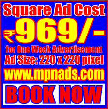 Square Ad Cost Rs. 969.00 for One Week Advertisement, Ad Size 220x220 pixel. For more Details please visit: www.mpnads.com