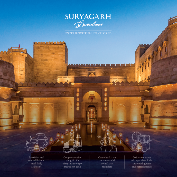 Room, Grand Heritage Room, Signature Suite, Luxury Suite and Jaisalmer Suite. From wedding style to colour palette, special religious to ethnic customs, Suryagarh is the host to your wedding in Jaisalmer. Weddings and Suryagarh go very well together indeed with the attentive staff and spectacular settings. Commence your journey into the new world at Suryagarh, Jaisalmer that takes the concept of exotic to a new level and provide memories to last a lifetime.